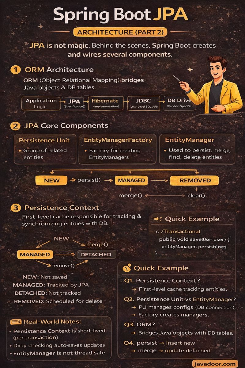 JPA is not magic. Behind the scenes, Spring Boot creates and wires several components that work together whenever your API hits the database.